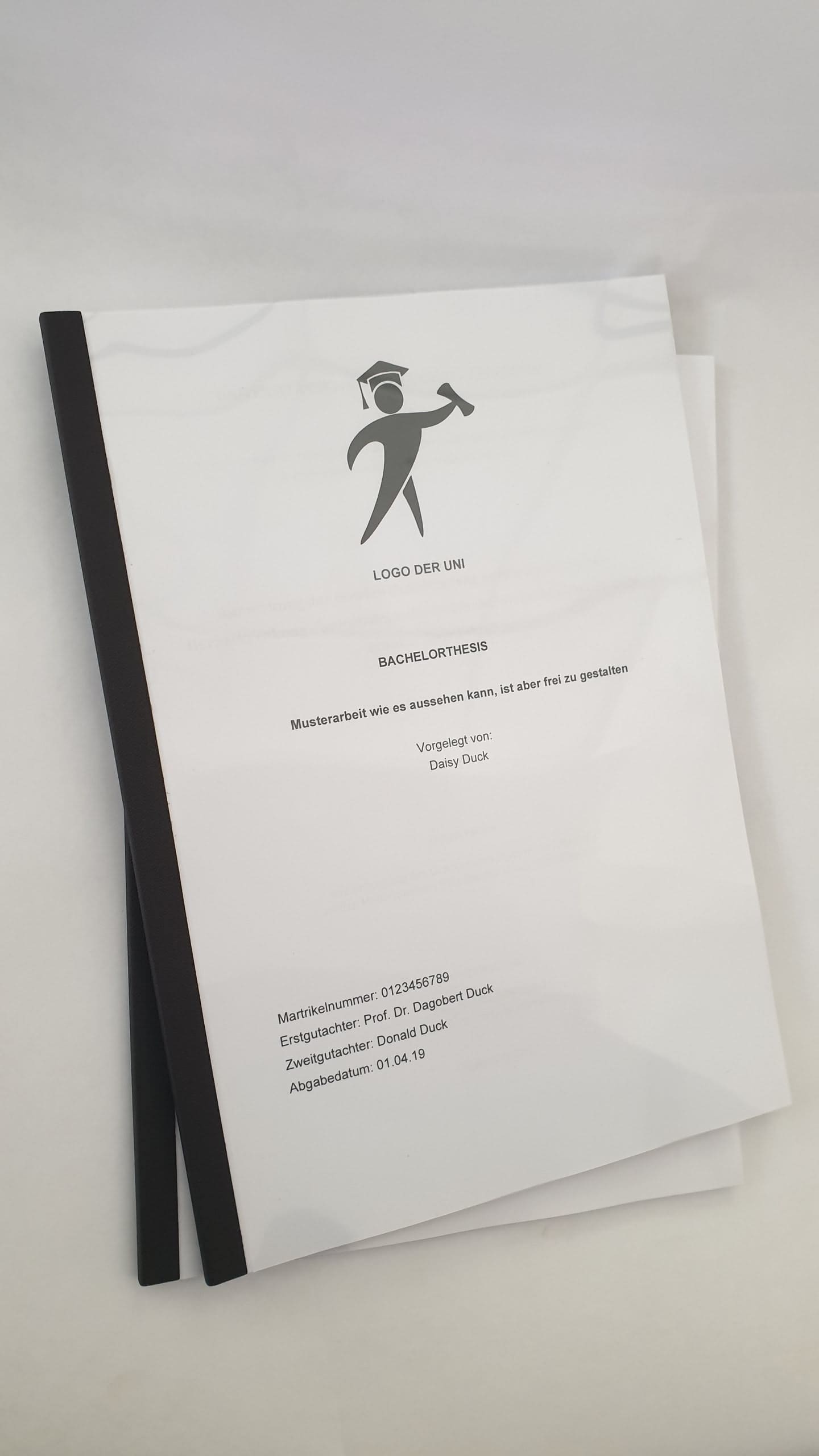 Bei uns können Sie "Abschlussarbeit | Fastback Bindung | unbedrucktes Cover" individuell konfigurieren und direkt im Online-Shop bestellen. Sollten Sie dazu Fragen haben oder eine benötigte Option nicht finden, kontaktieren Sie uns gerne!