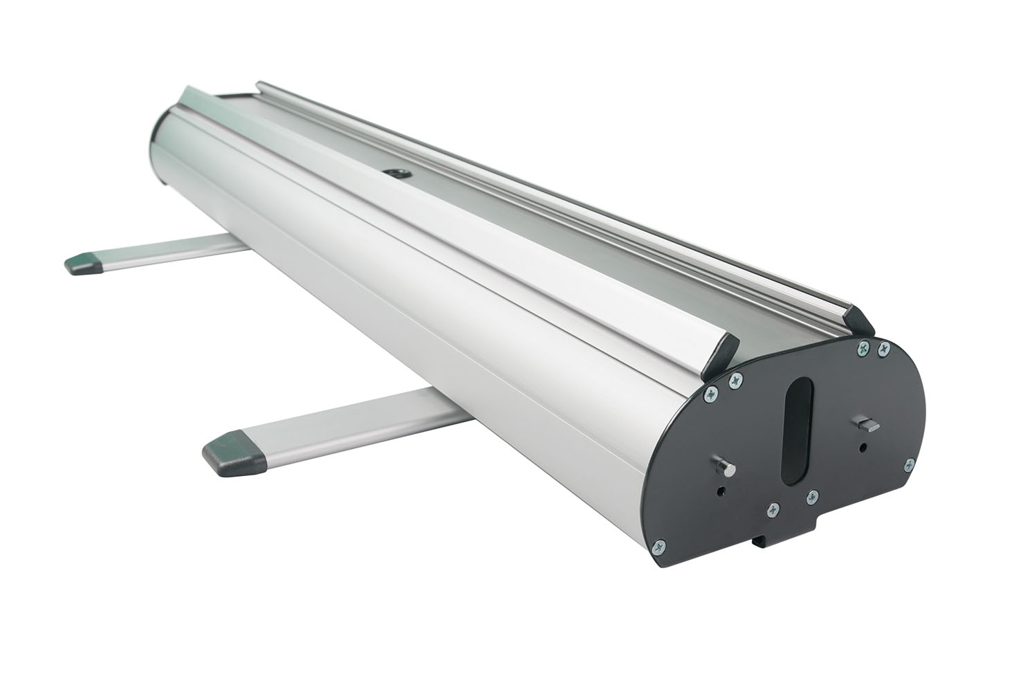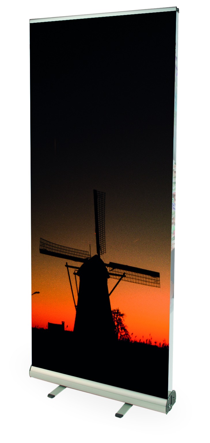 Mit dem Roll-Up Double von AR Display in Berlin erhalten Sie ein hochwertiges Banner, das sowohl einseitig, als auch zweiseitig verwendbar ist. Es ist mit einer Bungee-Stange und einer hochwertigen Klemmschienen mit Endkappen ausgestattet. Letztere sorgt für das mühelose Wechseln und Nutzen verschiedener Banner. Die Höhe des Banners kann mit den zwei regulierbaren Standfüßen jederzeit angepasst werden. Die Befestigung der Grafiken wird Ihnen durch ein selbstklebendes Band am unteren Rand erleichtert. Dank der mitgelieferten Transporttasche lässt sich das Banner besonders einfach und bequem zu Ausstellungen, Messen, Events, Werbeaktionen und Ähnlichem mitnehmen.