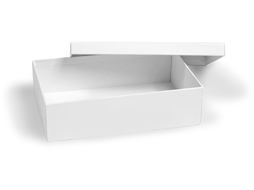 Die Stülpdeckelschachtel setzt sich aus einer Aufbewahrungsbox und einem praktischen Stülpdeckel zusammen. Somit kann die Box auf einfache Art und Weise verschlossen werden. Das verwendete Material besteht aus 0,40 mm starkem Postkarten-Chromokarton mit einem Gewicht von 260 g pro Quadratmeter. Es ist robust und reißfest und sorgt so für die nötige Stabilität. Von außen ist der Karton weiß gestrichen, von innen ist er matt weiß. Die Innenseite wird nicht bedruckt. Das Material hat eine hohe Steifigkeit mit einem 1,4 fachem Volumen, die Schachtel wird 1-teilig, gestanzt, genutet und offen (ungefalzt) geliefert.