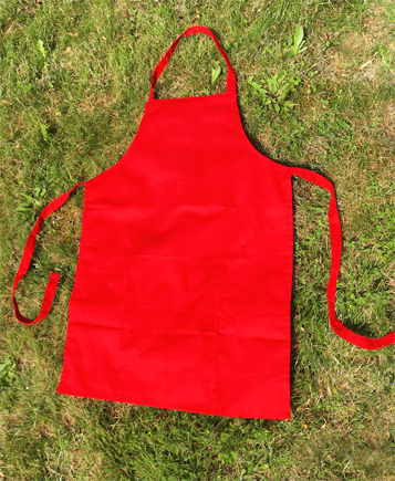 Die Schürzen werden aus 100% Baumwolle hergestellt und verfügen über ein robustes Nackenband. Die Größe der Schürze beträgt 75 cm x 67 cm. Zur Auswahl stehen folgende Farben: rot, schwarz, weiß, grün und creme. Die Stückzahl kann zwischen einem und 100 Stück liegen.