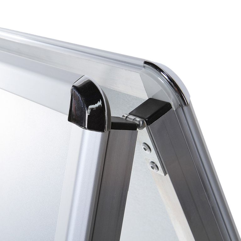 Der Kundenstopper von AR Display in Berlin überzeugt durch seine hochwertige Verarbeitung und seine stabile Bauweise. Die verbauten RONDO-Ecken minimieren das Verletzungsrisiko und die Schnellwechselrahmen aus Aluminium ermöglichen einen einfachen Austausch Ihrer Plakate.