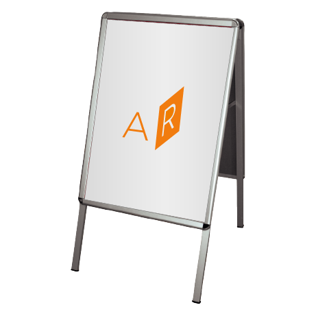 Hochwertiger, doppelseitiger Kundenstopper mit Schnellwechselrahmen direkt von AR Display aus Berlin. Optimale Werbung für innen und außen.