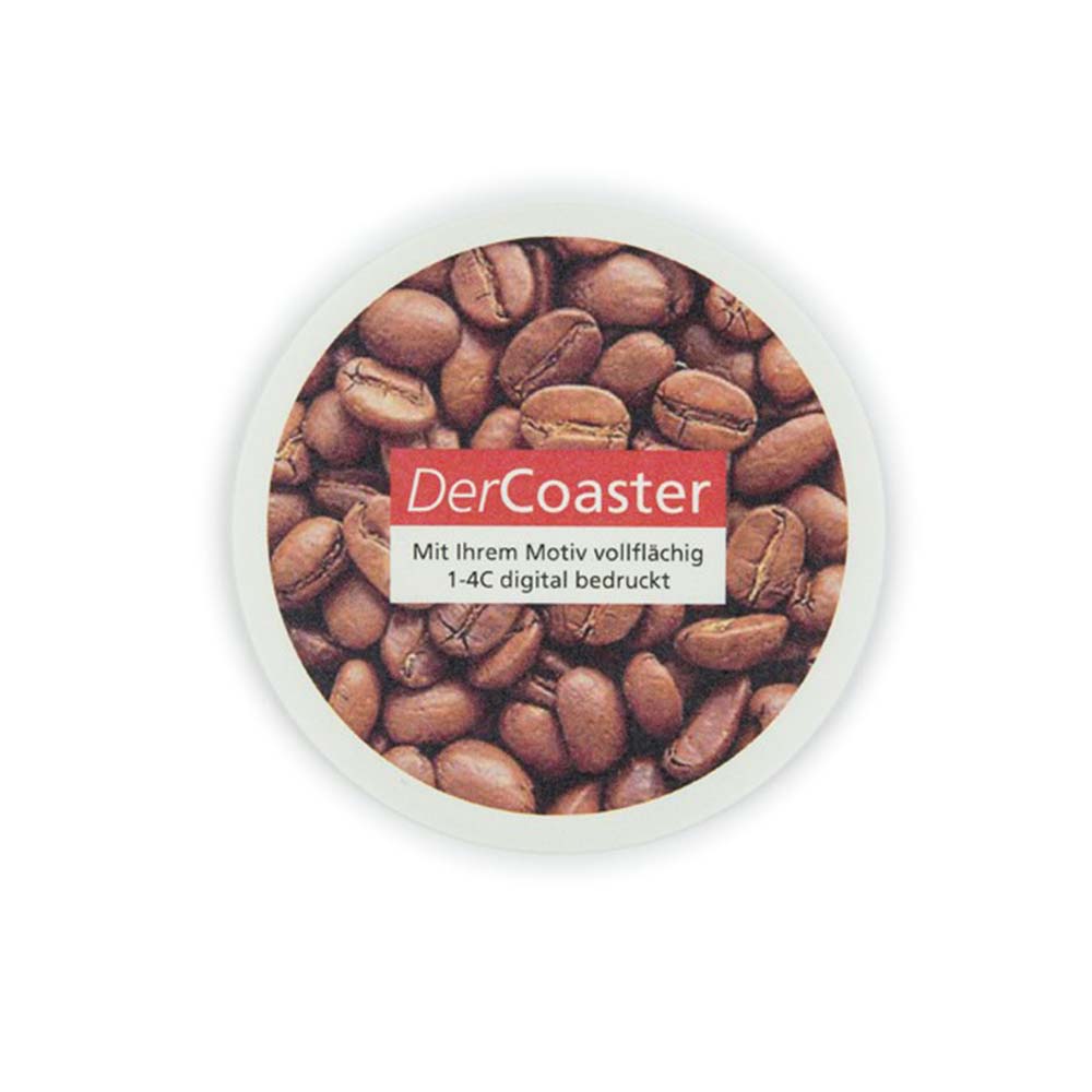 Getränkeuntersetzer aus Soft Airlaid als Untersetzer Ø90mm im vollfarbigen randlosen Digitaldruck.