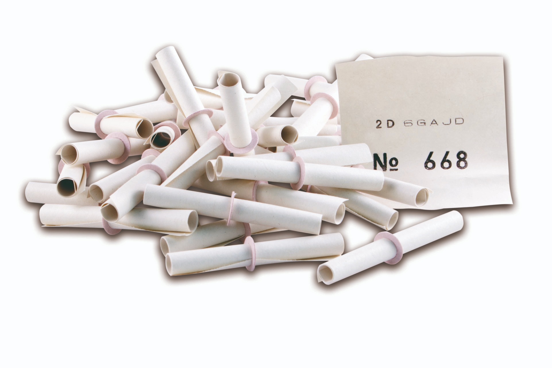 Schon fast 100 Jahre alt, aber noch immer Bestseller - die Röllchenlose von AR Display in Berlin. Das liegt sicher an ihrer Einfachheit, am Rascheln in der Losbox und an der Spannung beim Öffnen der Lose.