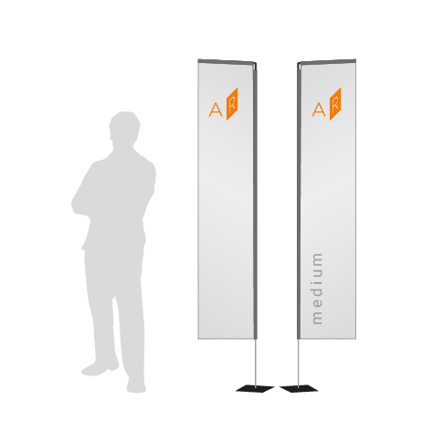 Die Beachflag Rechteck Medium von AR Display in Berlin bietet genügend Platz für Aufdrucke, welche dank der Rechteck-Form besonders gut zur Geltung kommen. Damit sichert die Fahne sich die Aufmerksamkeit der Passanten und ist so ideal als Wegweiser oder zur Kommunikation von Botschaften geeignet, beispielsweise auf Messen oder Events, vor Autowerkstätten, an Ständen in der Fußgängerzone oder als Außenwerbung vor dem Einzelhandel. Die Fahne ist vielseitig einsetzbar und sowohl für einmalige Verwendungen wie Geschäftseröffnungen oder Produktvorstellungen als auch als dauerhafter Werbeträger geeignet.